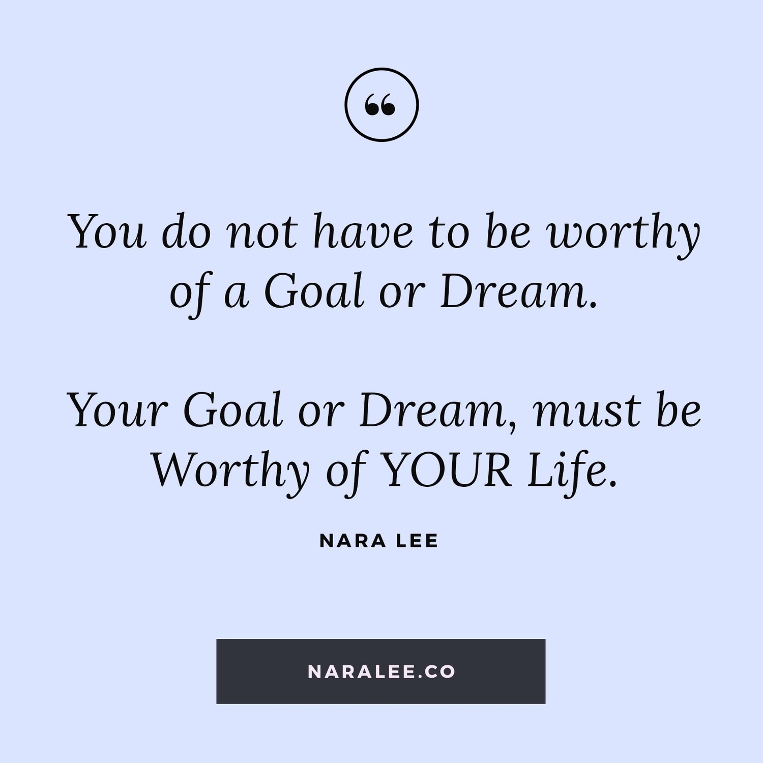 Your goal must be worthy of your life enough (rather than you being worthy of your goal), because when you face obstacles and challenges on your path, you must find the strength, drive and motivation to keep going. And any goal worthy of achieving, takes time, commitment, persistence and hard work.