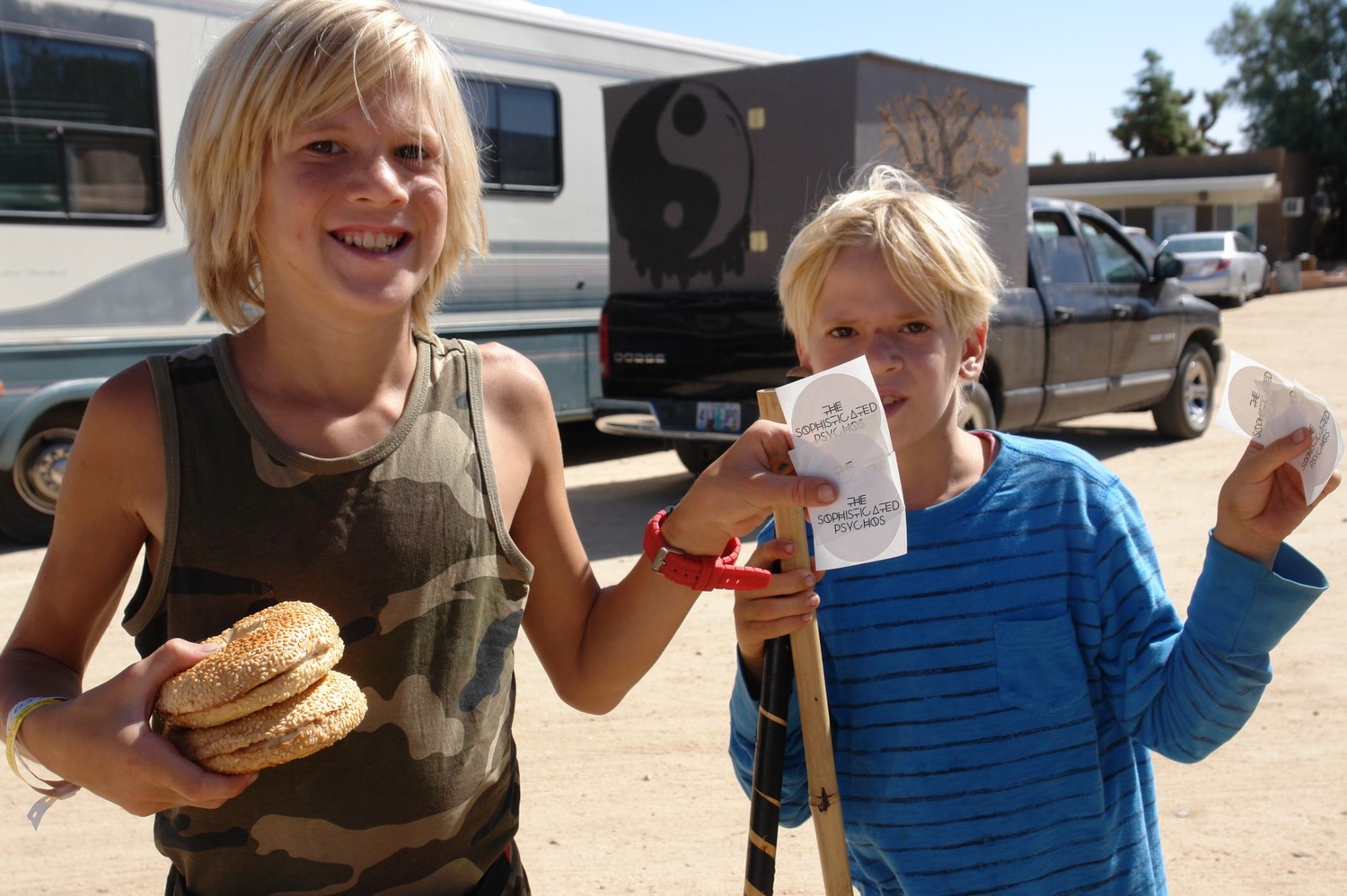 Children playing outdoors, happy and loving The Sophisticated Psychos stickers!