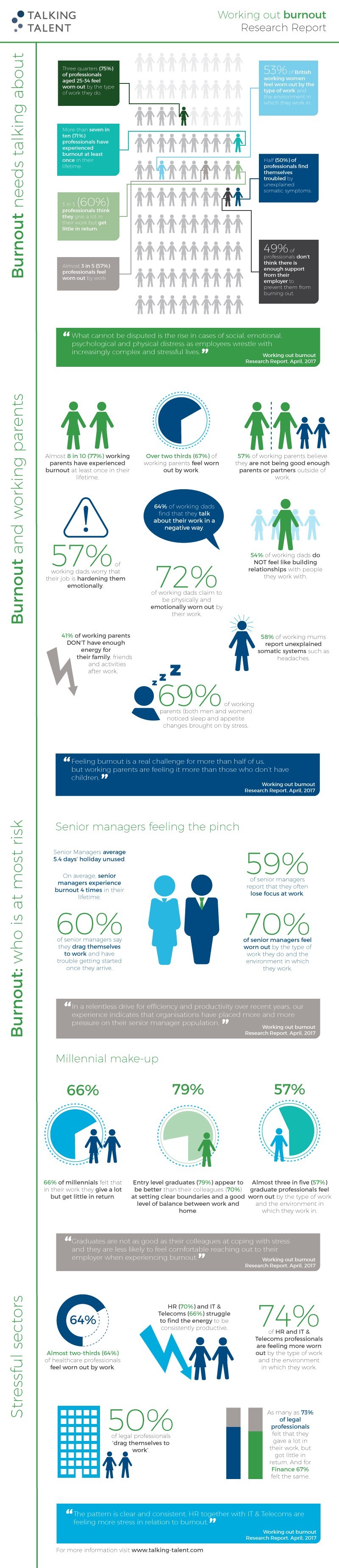 Talking Talent’s research shows how burnout is a risk for working parents, and for senior managers. Senior managers who are also working parents may need greater support still from their employers.