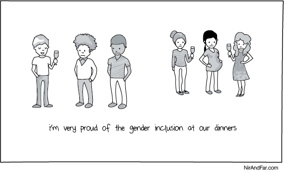 Having a topic helps in two ways. For one, it gets us past the small talk of sports and weather, and helps us open up about stuff that actually matters. Second, it prevents the gender split that happens when couples convene in groups — men in one corner, women in another. The question of the day gets us all talking together.