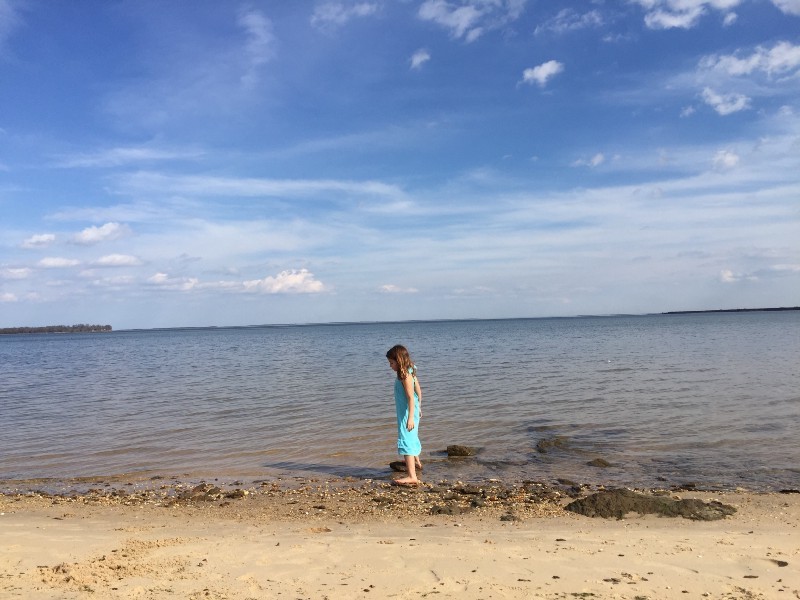 Sunshine filled the deserted beach and warmed our tired bodies as we stretched out on the blanket. Lounging gave way to treasure hunting as we all took turns finding our booty: golden pebbles, multicolored shells, beach wood, clams. We even tried to teach the eleven year old dachshund how to fetch. Laughter became our only conversation.