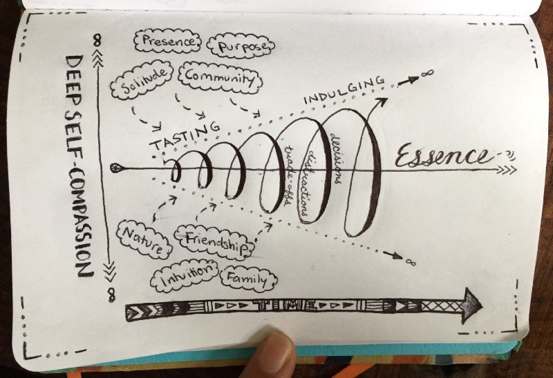 The ? to nailing the recipe? I don’t know for sure, probably a ton of trial and error. But my gut tells me the root of it goes back to that connection to my essence, to guide me through life’s decisions, distractions, and trade-offs. It sounds circular but perhaps this doodle can help: