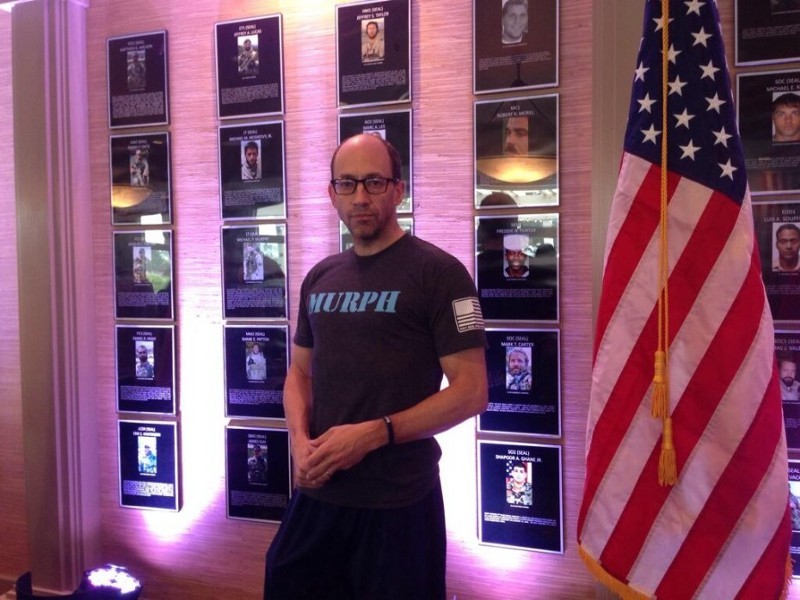 DC: “There is a Crossfit workout called Servais. It’s a Hero workout [named in honor of U.S. Air Force Senior Airman Adam Servais, who died in 2006 in Afghanistan, when his vehicle came under hostile fire]. You run 1.5 miles, then you complete 8 rounds of 19 pull-ups, 19 push-ups, and 19 burpees [152 reps of each exercise], then you do a heavy sand bag carry for 400 meters, and then you end with a 1-mile farmer’s carry with 45 lb. dumbbells.”