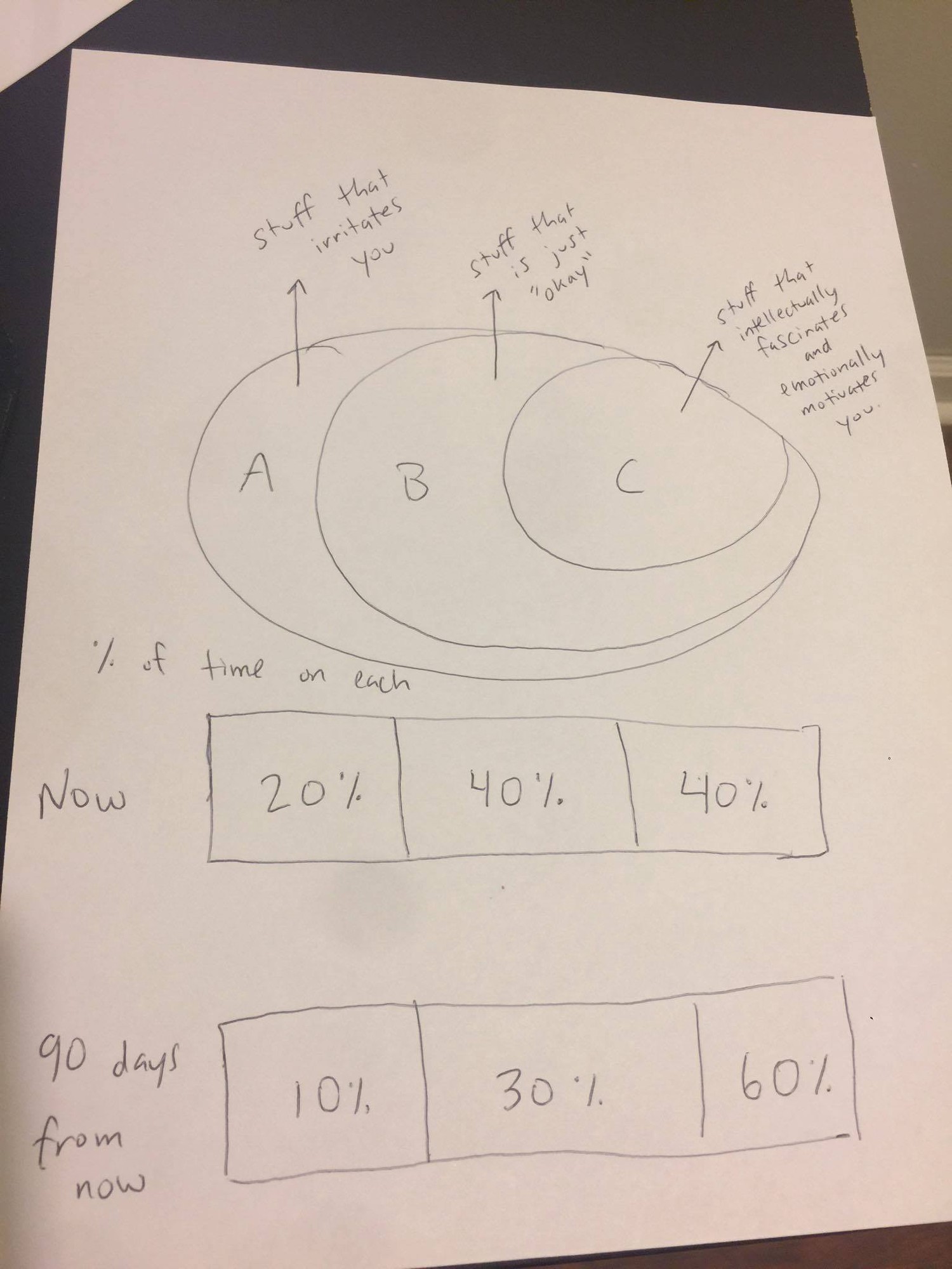 Your goal should be to re-orient your life, such that you are spending nearly all of your time in Category C.
