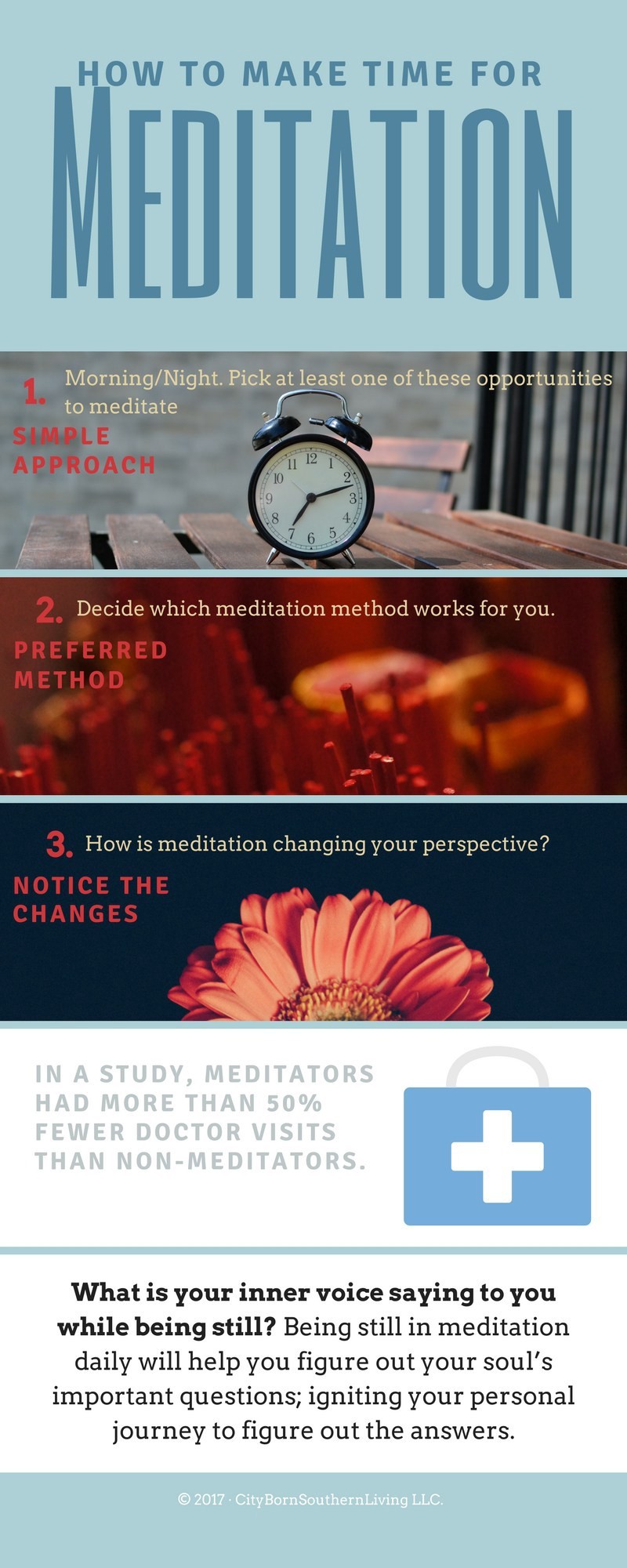 Practicing meditation will change your perspective from not having enough time to elevating your level of clarity about how your time is spent. Are you focusing on things that really matter?