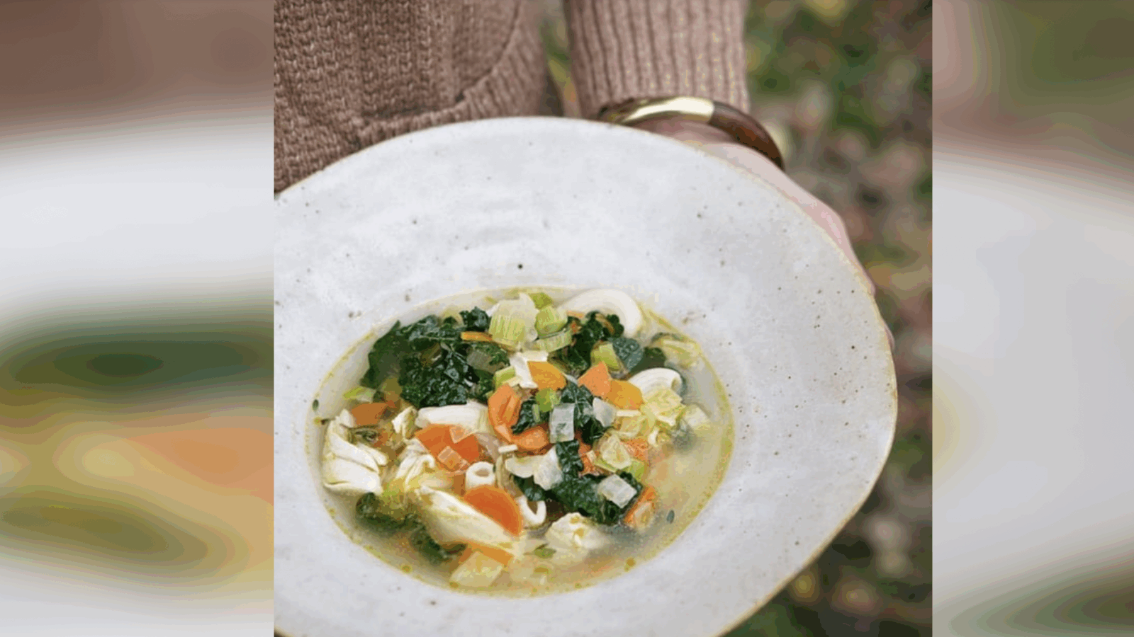 3. Add the kale and the shredded chicken and cook until the kale has wilted and the chicken is warmed through. Remove the thyme sprigs.
