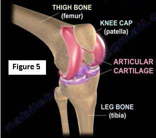 Articular cartilage does not have the ability to heal itself, however there are several treatment options available to aid in the repair of injured cartilage. The knee is the most common joint in the body with cartilage injury issues. The knee joint is composed of a femur, tibia and a patella (Figure 5). There are two types of cartilage in the knee joint: the articular cartilage and the meniscus, which is a shock absorbent cartilage. There are also important ligaments within the knee joint. The anterior cruciate ligament and the posterior cruciate ligament.