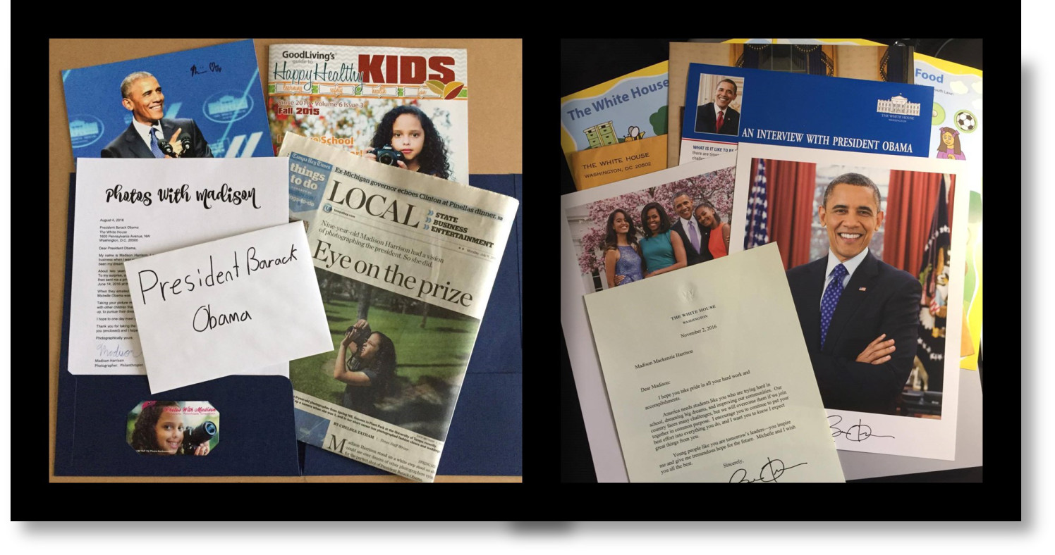 My dream coming true, was a pretty big deal. When we returned from DC, my mom said I should write a letter to President Obama and send him the photo I took of him. So, I typed a letter, included the photo, my business card, a magazine I was on the cover of and the Tampa Bay Times newspaper that covered my story. We gave it to a friend of a friend to hand-deliver since she personally met with him monthly for breakfast.