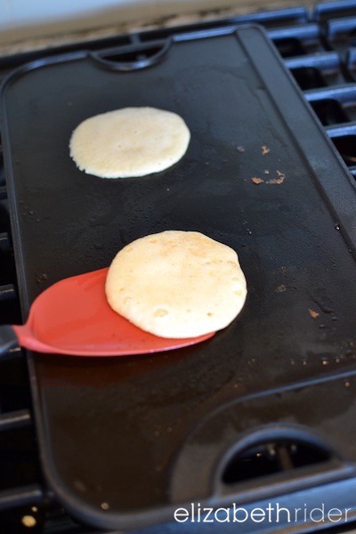 Preheat your cast iron pan over medium heat for 10 minutes. A nice medium heat is important; if the pan is too hot they’ll burn but if it’s not hot enough they won’t set. If you have a newer/professional-style gas stovetop start with medium-low heat because those puppies have more power than a standard stovetop.
