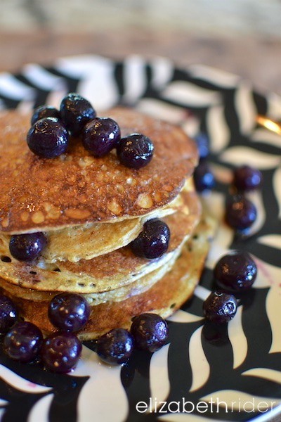 Easy on the sugar to keep them healthy, and read the ingredients. Only 100% real maple syrup–most pancake syrup is corn syrup with maple favor added to it (gross!). Honey is also delicious on these pancakes, look for raw honey as it will be less processed and have a lower glycemic index than processed honey. The label will indicate raw.