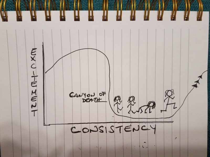 A few of them, however, might have become something special had I stayed consistent enough to get past the Canyon of Death (see: illustration).
