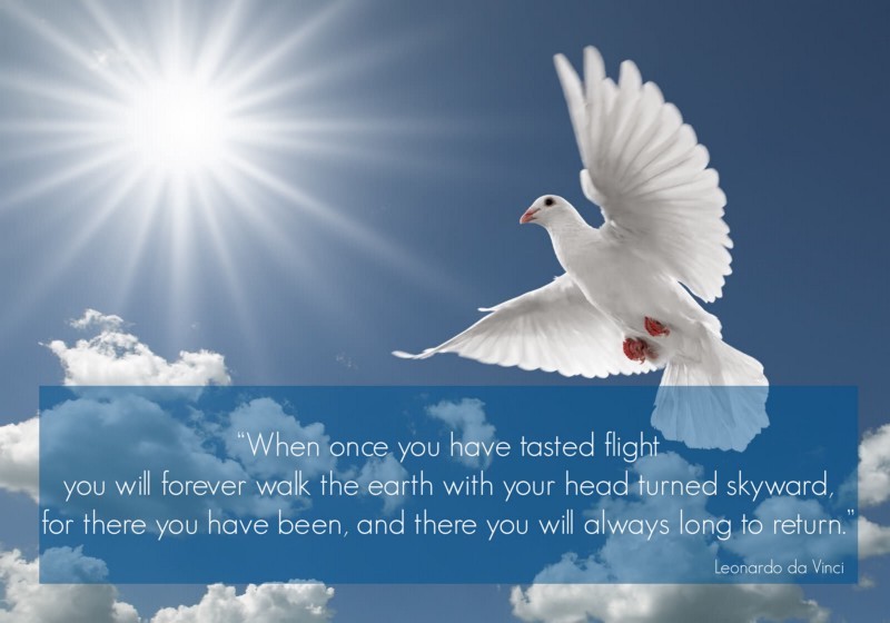 The key is to take 100 percent responsibility for the life you want, and with each day choose to take a step. As you maintain your daily practices, you will keep taking flight into all of the possibilities in each day. You will discover that which Leonardo da Vinci discovered, “When once you have tasted flight, you will forever walk the earth with your eyes turned skyward, for there you have been, and there you will always long to return.”