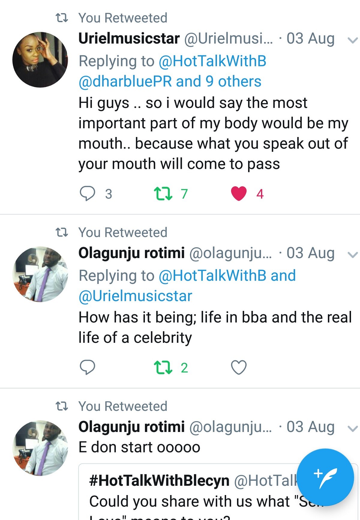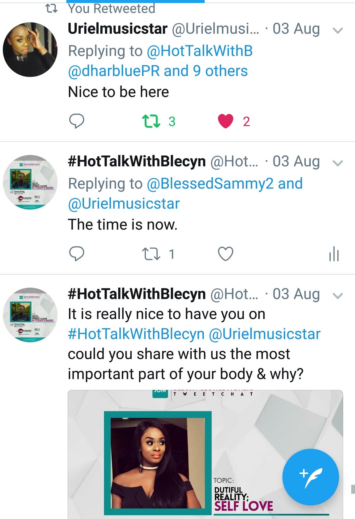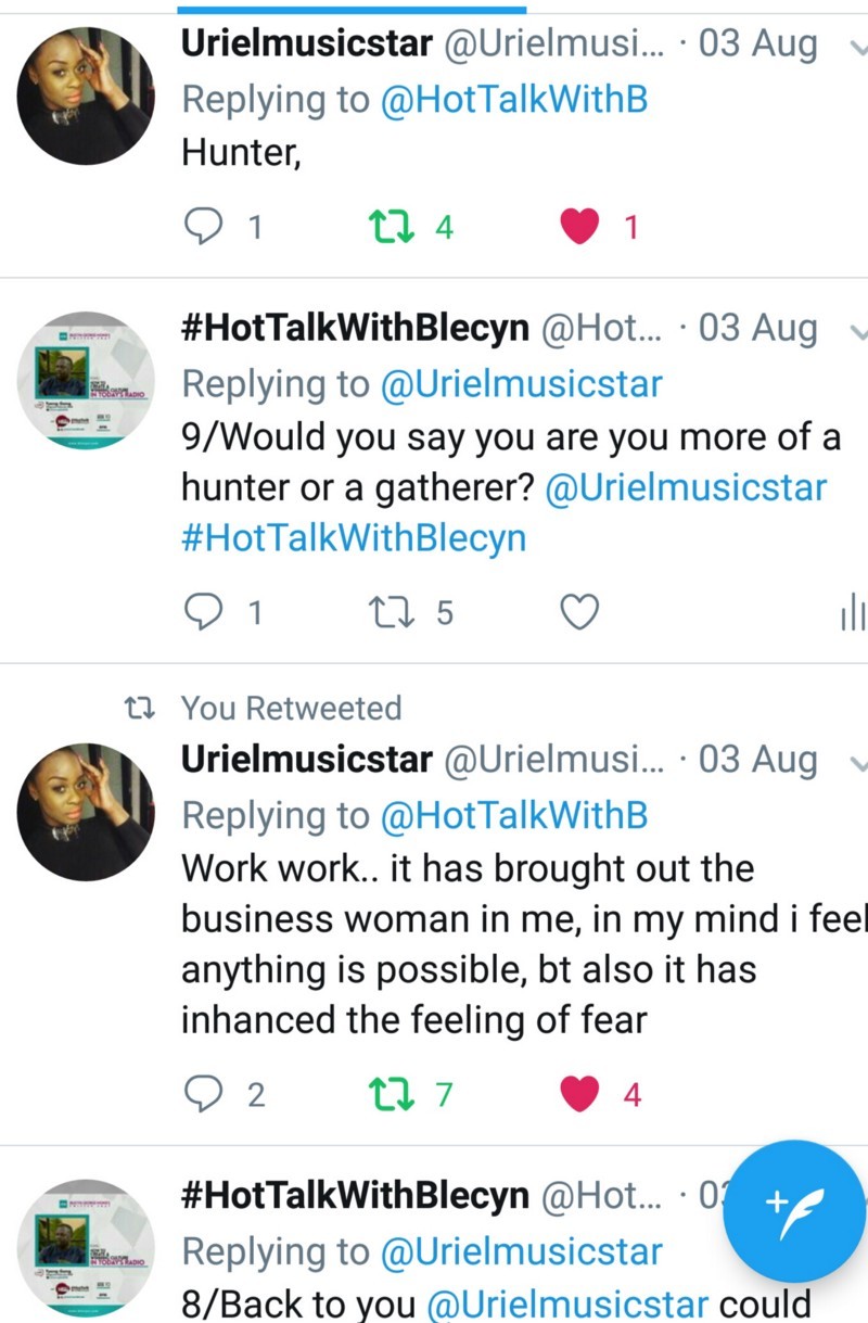 BGM: A million Thanks to you @Urielmusicstar for coming on today’s episode of #HotTalkWithBlecyn keep being fun. God bless you.