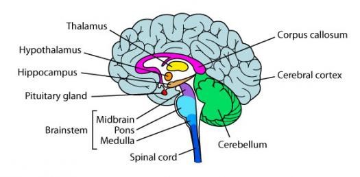 The cerebral cortex (or what we introduced earlier as the human brain) plays a key role in memory, attention, perceptual awareness, thought, language and consciousness. It is divided into four main regions: