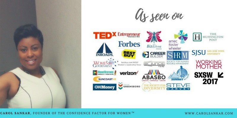 Carol Sankar is a high level business consultant and the founder of The Confidence Factor for Women in Leadership, which is a global executive leadership firm focused on diversity and inclusion initiatives for high level women. Carol has been featured at TEDx, Forbes, The Steve Harvey Show, Bounce TV, Inroads, The Society for Diversity, SHRM, Huffington Post, Entrepreneur Magazine, Working Mother Magazine and more. For more details, visit www.carolsankar.com.