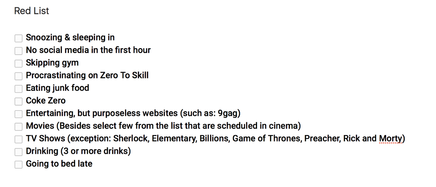 These are the activities or habits that simply do not support any of your goals, and reduce the quality of your life in different areas of your life, and make it challenging to stay true to what you want to achieve.