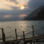 My first day on the lake, eager to explore, I followed the path along the water’s edge. I’d been told that if I kept the lake and sheltering volcanoes on my left I’d soon reach the road to the pueblo on my right. But I’d barely been walking five minutes when the dirt path dead-ended. I turned back. And back at the beginning I met a sun-burnt hiker, young, muscled,baseball capped.