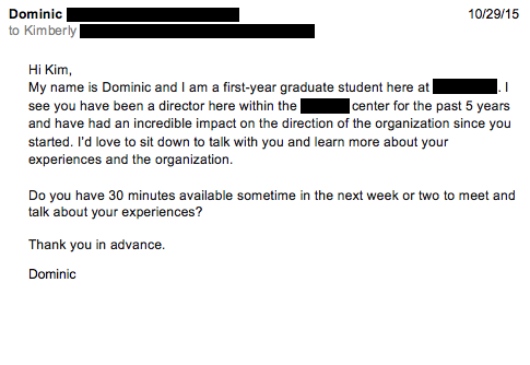 After I knew who I wanted to reach out to and I built my confidence, I was ready to connect with them. I needed to be strategic in my email and plan out how to approach them.
