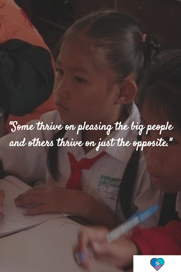Those that rebel against the code of the big people often get punished and yelled at and taught that they are bad kids because they misbehave and get into trouble. This also comes at a price, because these kids internalize all of these negative attributions.