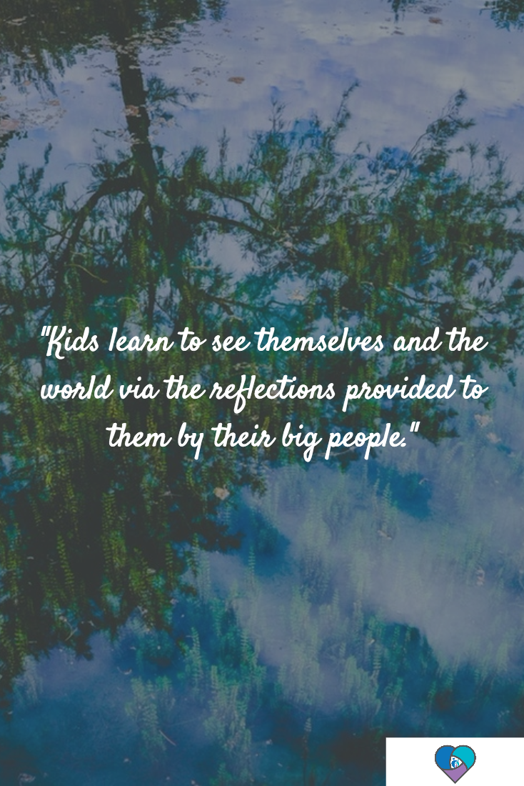 Kids learn to see themselves and the world via the reflections provided to them by their big people. This becomes the foundation for the development of their personalities. Much of this happens in the first five years so that they don’t even remember where all this imprinting came from when they get older.
