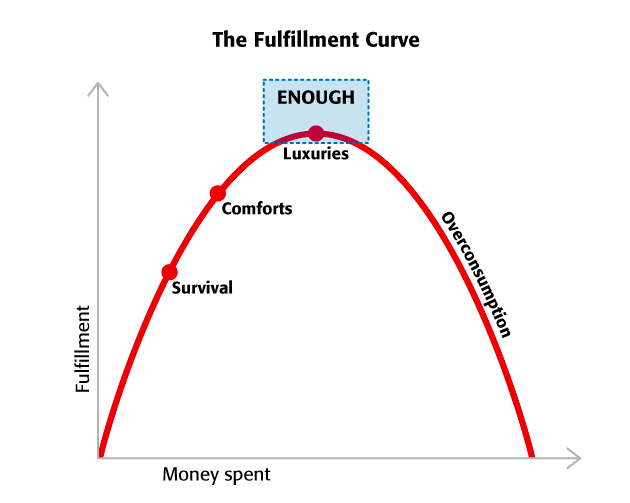 In the personal finance classic Your Money or Your Life, authors Joe Dominguez and Vicki Robin set up a though-provoking premise. It is that at a certain point, we reach a level of material saturation and what comes after that is not intrinsically satisfying or even healthy; it is overconsumption.
