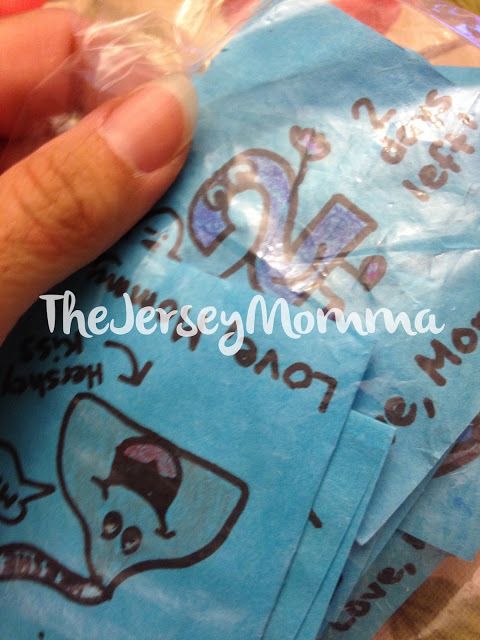 He would always bring the notes back home and I would just throw them away. But one day he caught me tossing them and he said, ‘Don’t throw them out! I want you to save them.’ I figured, why not? and stuffed them in a small ziploc bag in the kitchen each day when I emptied out his lunch box.