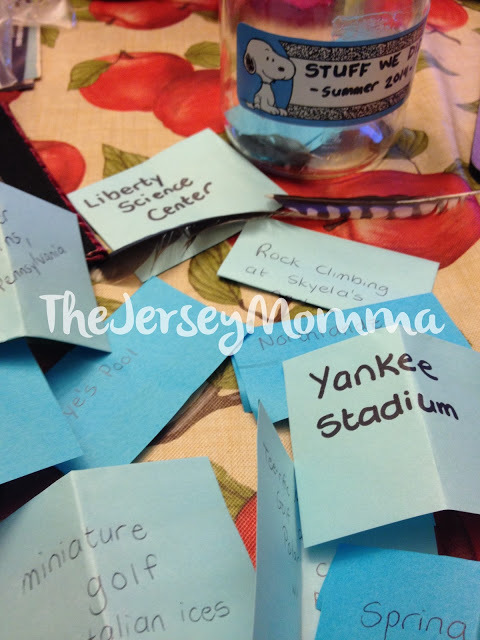 First Grade came around, and again, our son was not enthusiastic about heading back to school. That summer I kept a ‘Stuff We Did’ jar. Every time we visited someplace fun or did something memorable, I would write it on a little piece of paper and toss it into the jar (it was an old salsa jar that I had cleaned out).