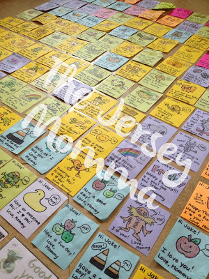 When Kindergarten ended, I put all the notes in a small photo album so he could look through them like a book.