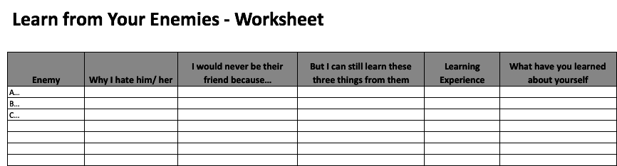 4. List three things that you can learn from each of your enemies.
