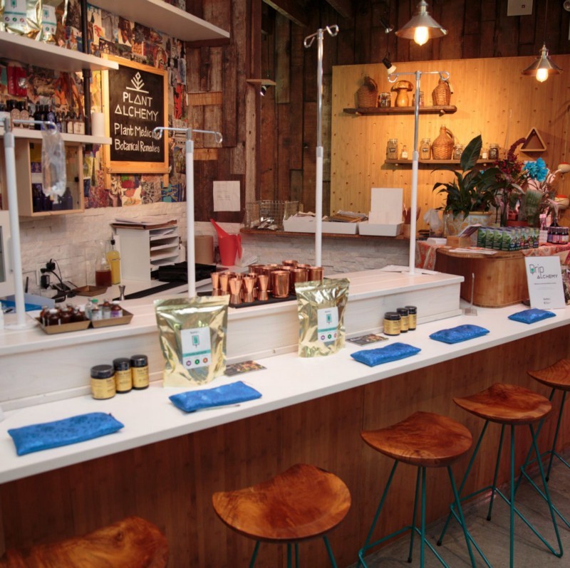 I love coming to The Alchemist Kitchen for all of my alternative health needs. The cafe features plant based food and herbal tonics that support holistic health and healing. Events are also held in the space to educate individuals on the power of plant based healing and herbal remedies as well as guide and support anyone looking to understand more about the connection between plants and improving overall well-being. You can shop for all of the sage, CBD oil, ayurvedic and chakra oils that you need. Downstairs is the infrared sauna at Higher Dose where you can detoxify your body. And our group was able to get a free booster shot with Nutridrip.